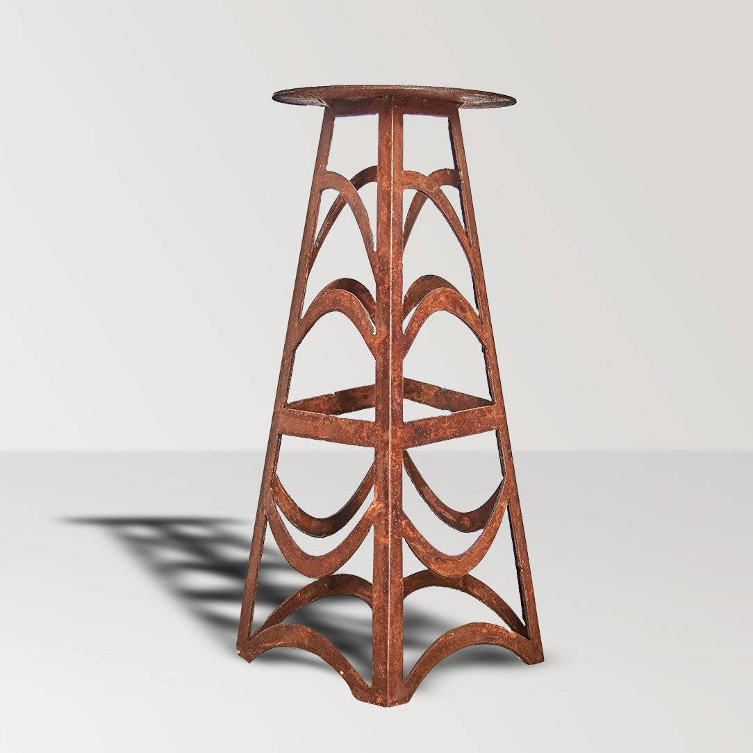 - Industrial y moderno: El uso del acero y el acabado oxidado le confieren un estilo industrial y moderno, que encajaría perfectamente en espacios contemporáneos o con un toque urbano.